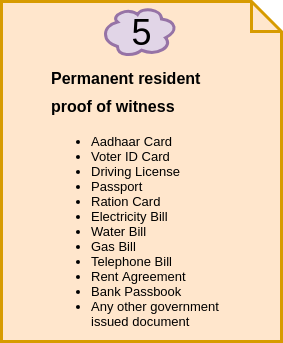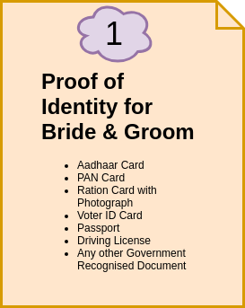 Following are the documents chart required to obtain an online marriage certificate in Delhi: