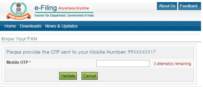 Now, an OTP will be sent to your mobile number. All you need to do is just enter that OTP number and click on ‘Validate’.