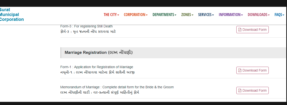 STEP 3. Now select the option of Online Forms. Through this, you can download the marriage registration application form.