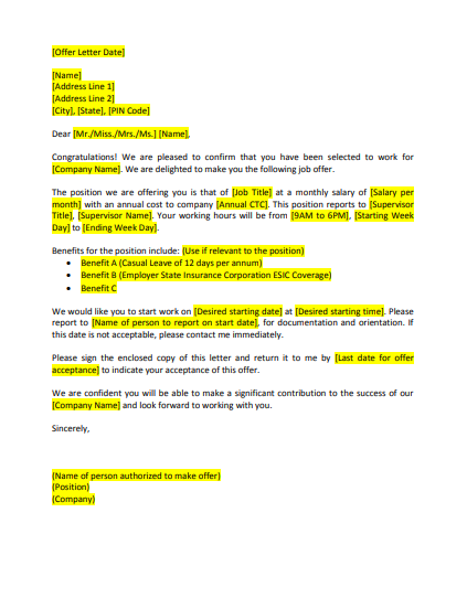 आप यहां से एक ऑफर लेटर प्रारूप पीडीएफ भी डाउनलोड कर सकते हैं।
